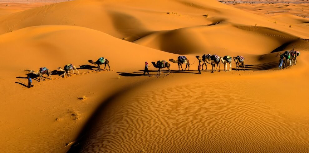 - Merzouga Desert & Camel Trek: Ride camels across golden dunes, watch the Sahara sunset, and spend a night in a luxury Berber desert camp.